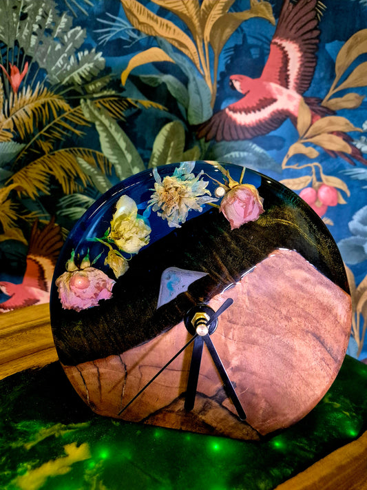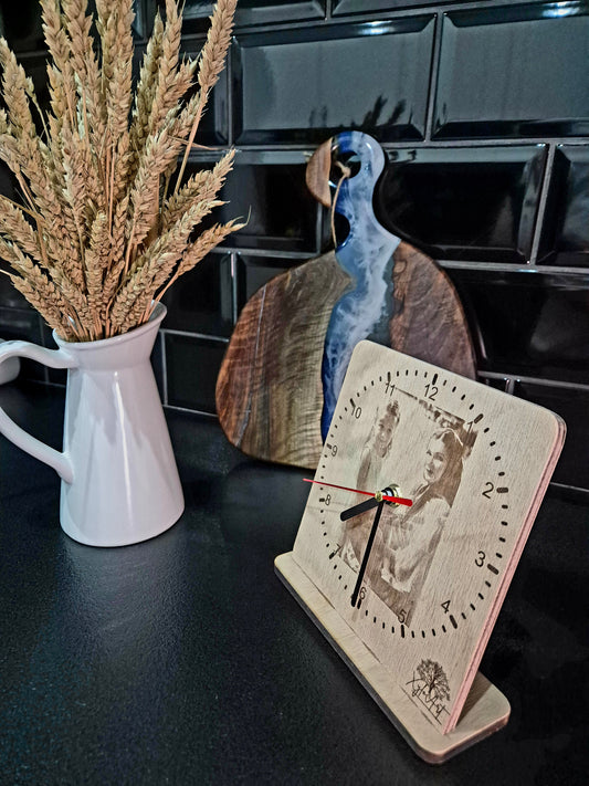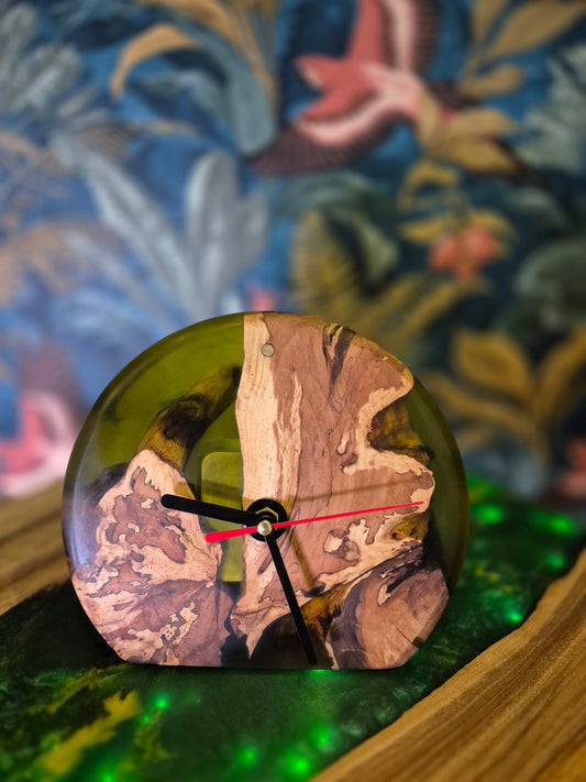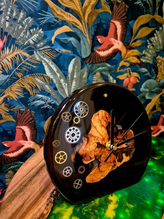 Ceas de birou din lemn recuperat si rasina epoxidică