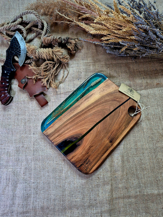 Platou pentru servit din lemn de nuc și rășină epoxidică
