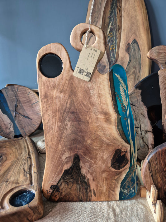 Platou pentru servire din lemn masiv de nuc si rasina epoxidica