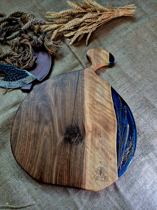 Platou pentru servit din lemn de nuc si rasina epoxidica