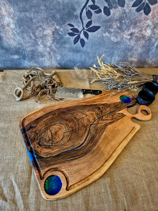 Platou pentru servire din lemn masiv de nuc si rasina epoxidica